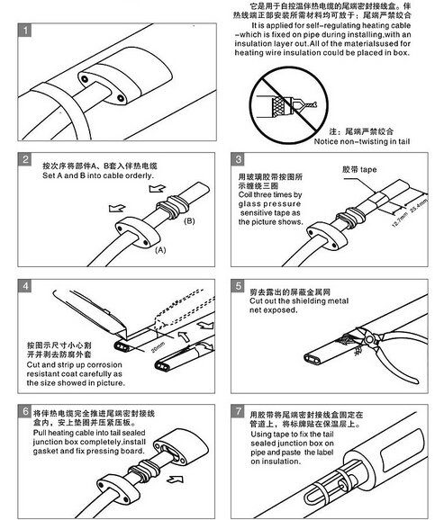 防爆终端接线盒又称终端封头,用于电热带的末端,使电热带尾端与外界隔绝。防爆标志:“EⅡT4”。适合全天候条件和石油、化工等工厂一区、二区爆炸性气体混合物T3组场所使用。电JK漫画官网APP带尾端严禁绞合,需要使用尾端接线盒连接,并作密封处理,以下通过接线图的说明,教您电JK漫画官网APP带的尾端接线方法,起到更好的密封作用,防止电JK漫画官网APP带受潮或进水而造成短路。
